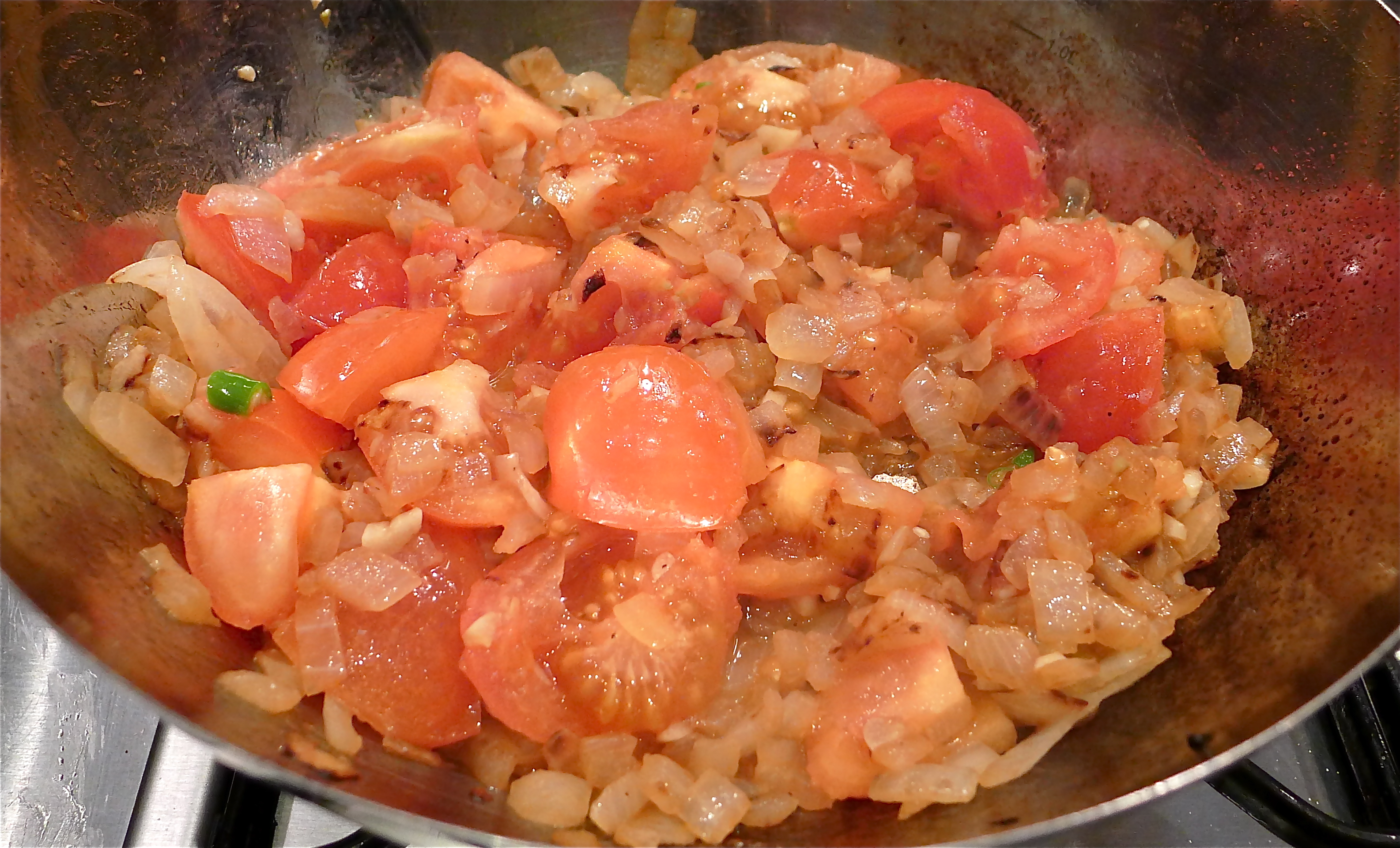 Add tomatoes, cook until soft, around 10 mins. Then add the spices, and the salt, and mix for 5 mins.